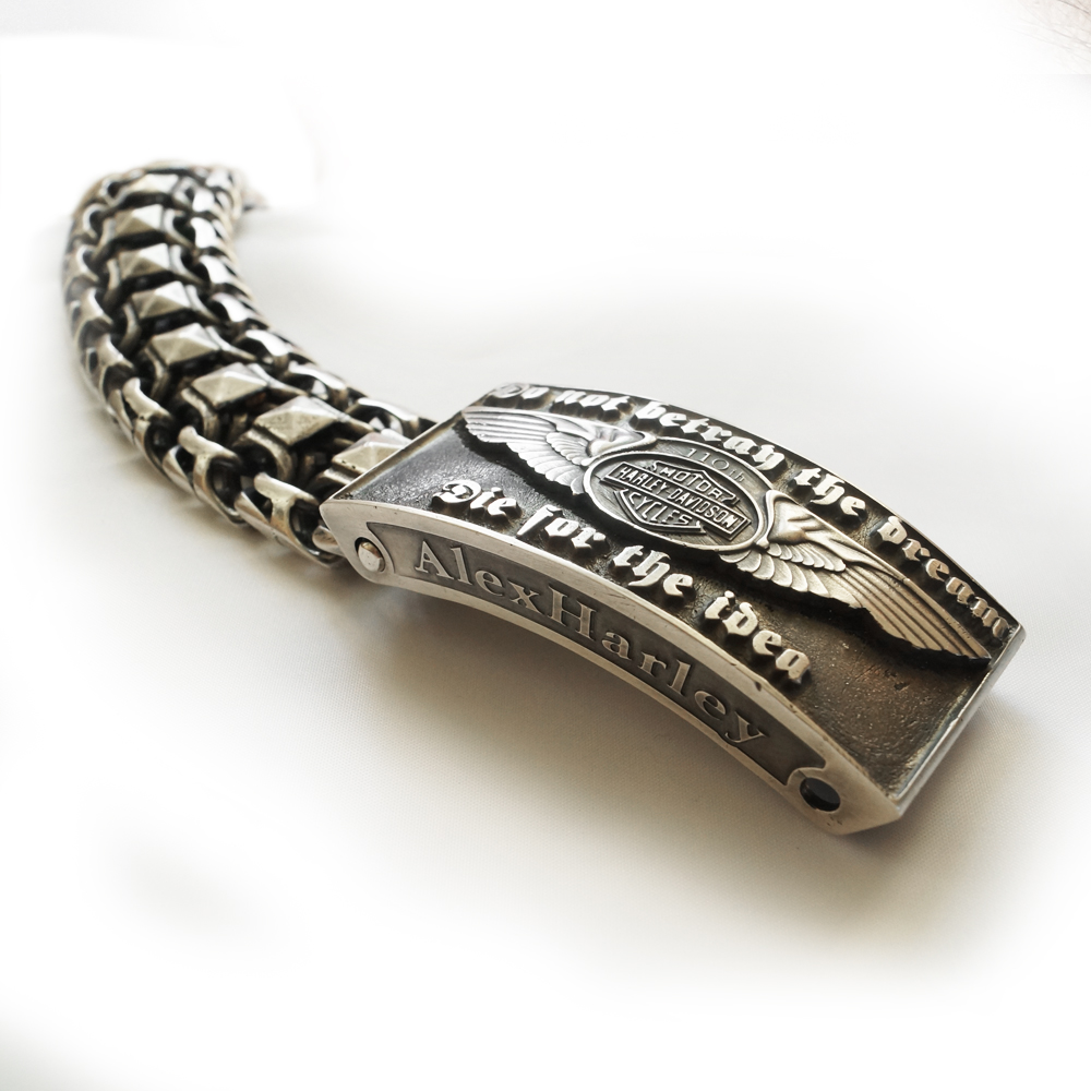 Именной серебряный браслет Harley-Davidson. Вес 295г.