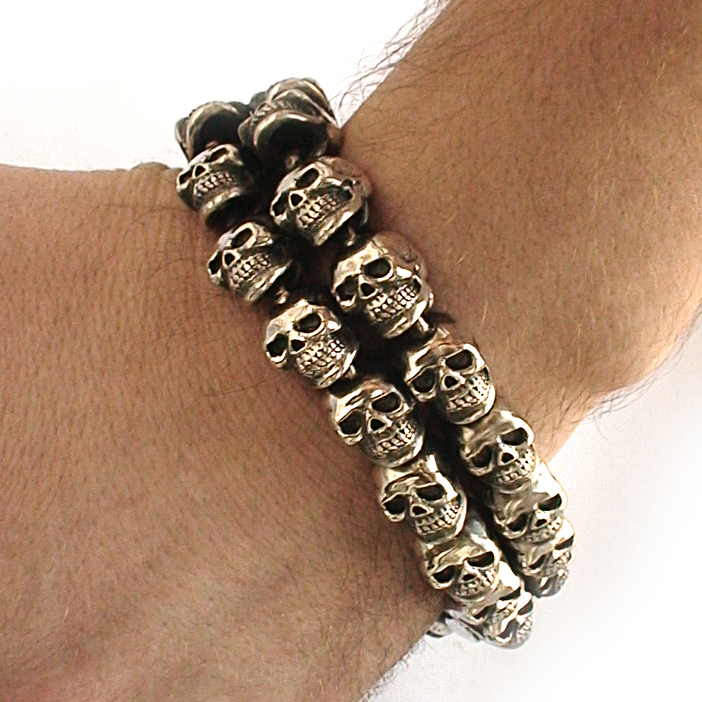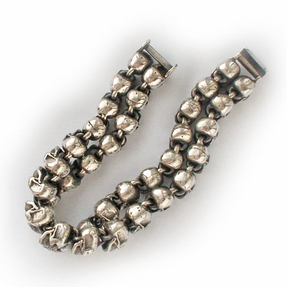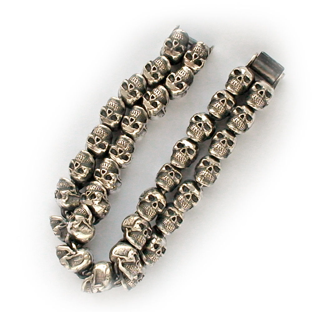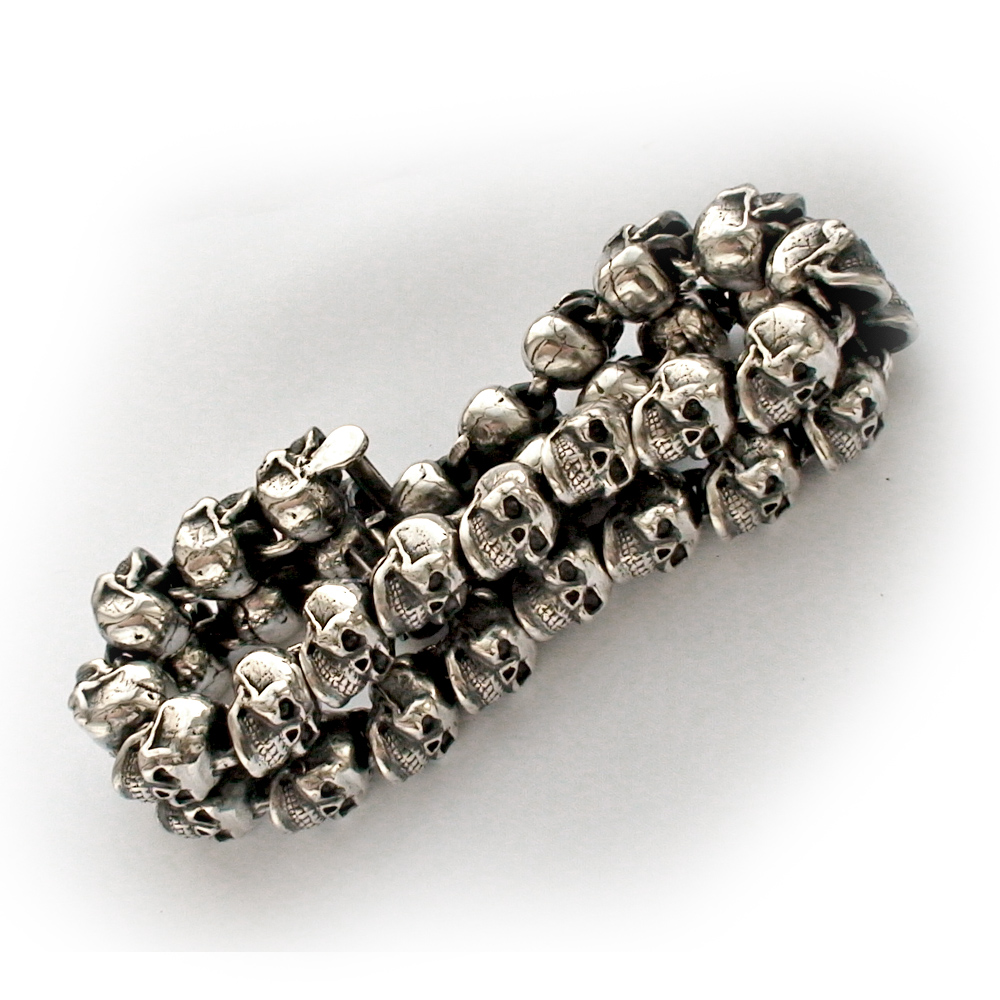 Браслет серебряный Черепа, чернение.