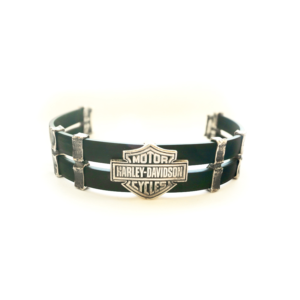 Браслет серебряный Harley-Davidson, чернение, каучук. Такой браслет можно купить только здесь.