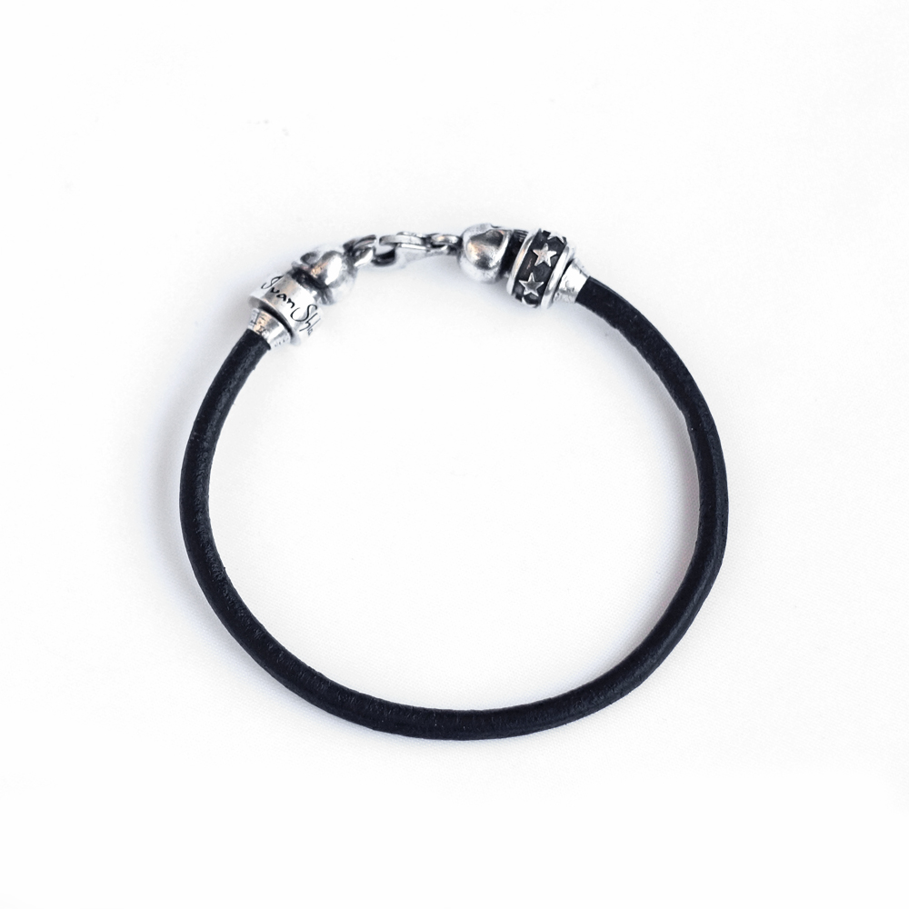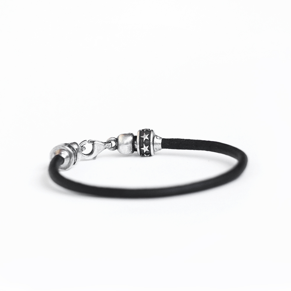 Браслет серебряный, чернение, кожа