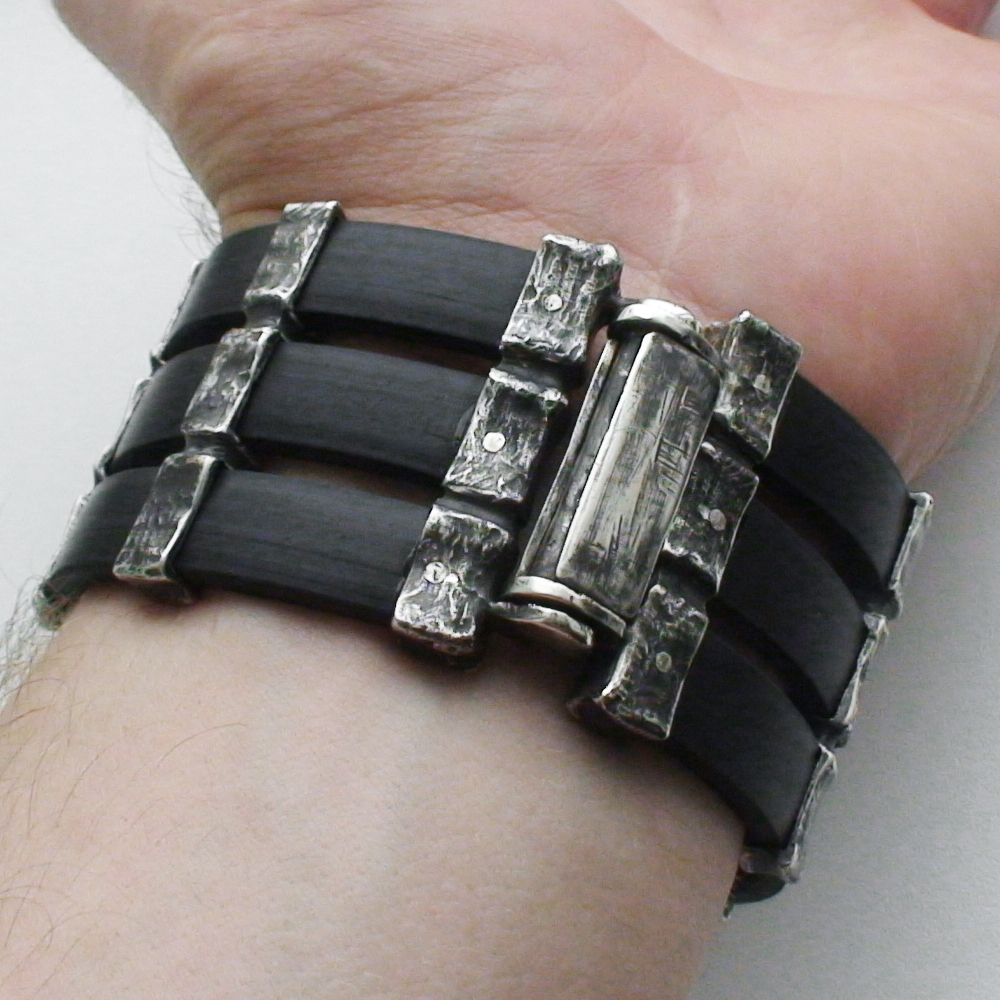 Браслет серебряный SUZUKI Hayabusa, чернение. С каучуком.
