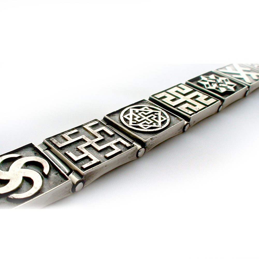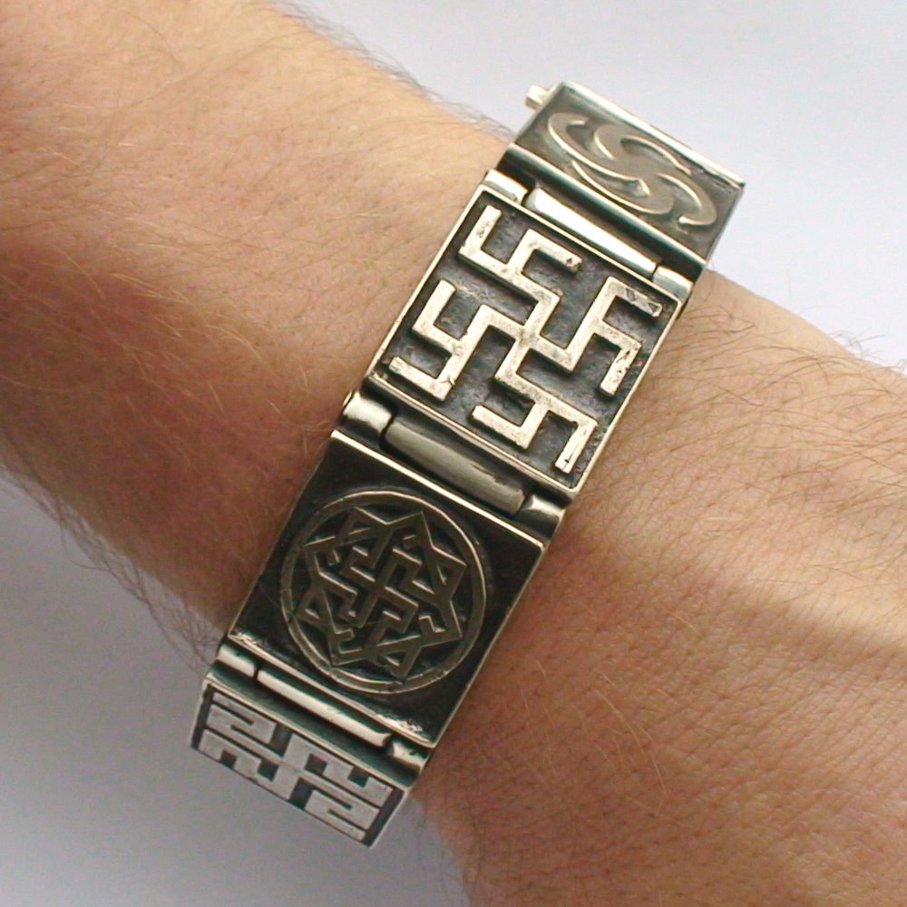 Серебряный браслет весом 150гр. со свастиками, сделан по индивидуальному заказу.