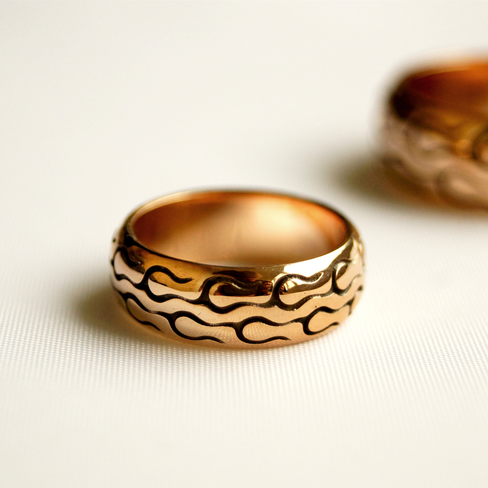 Кольцо золотое мотошина, сделано на свадьбу.