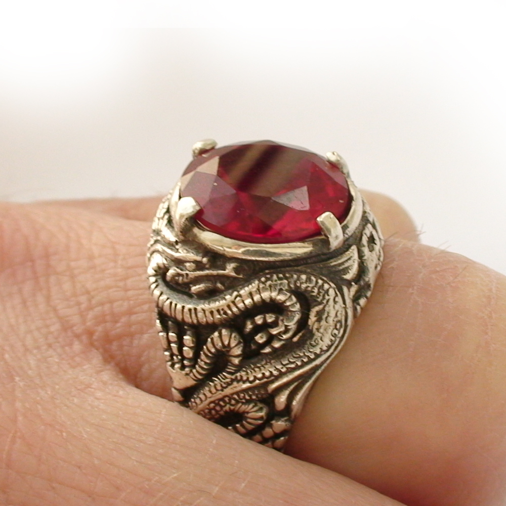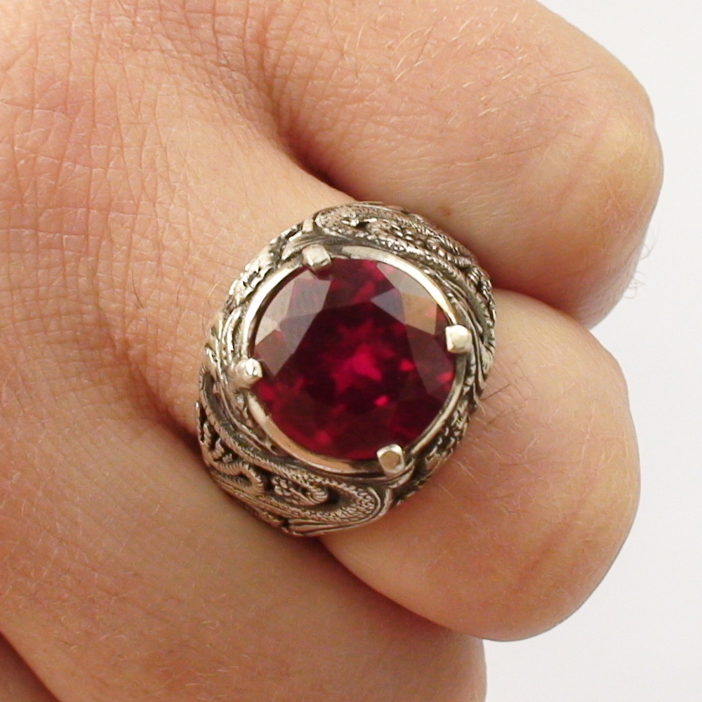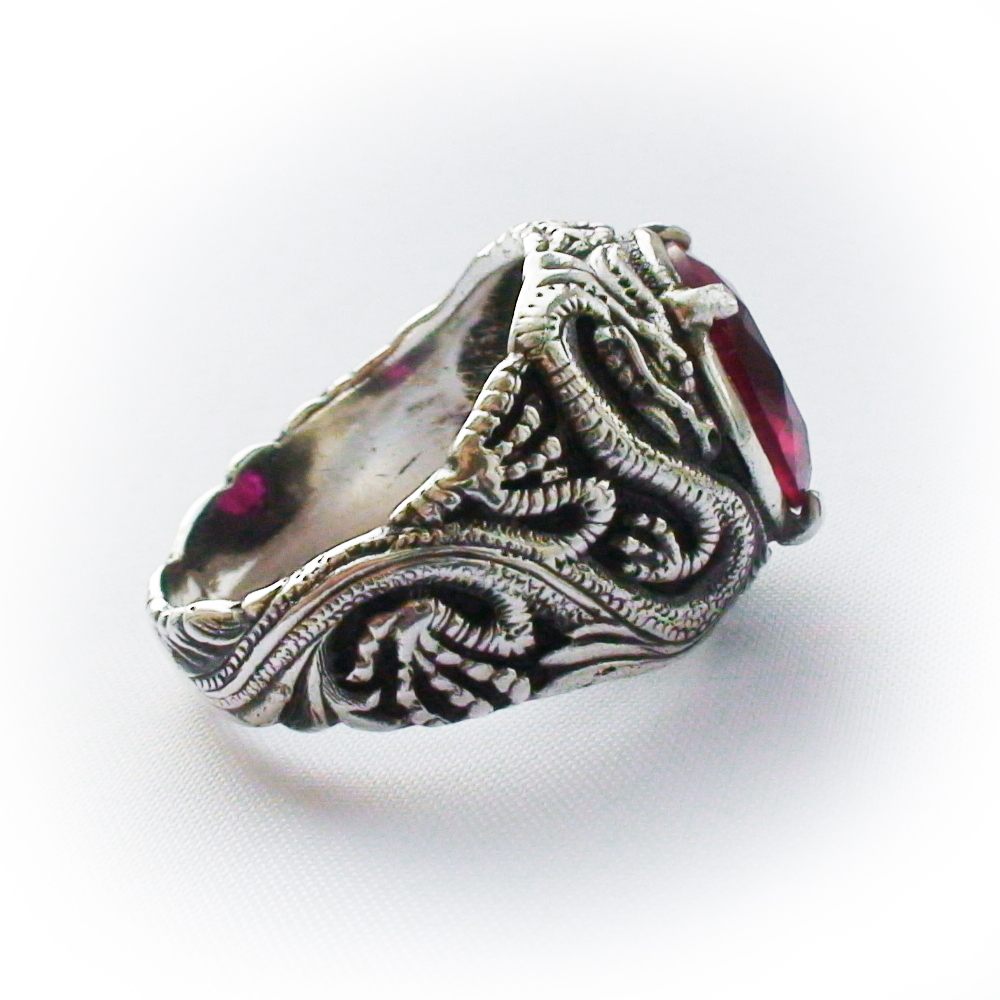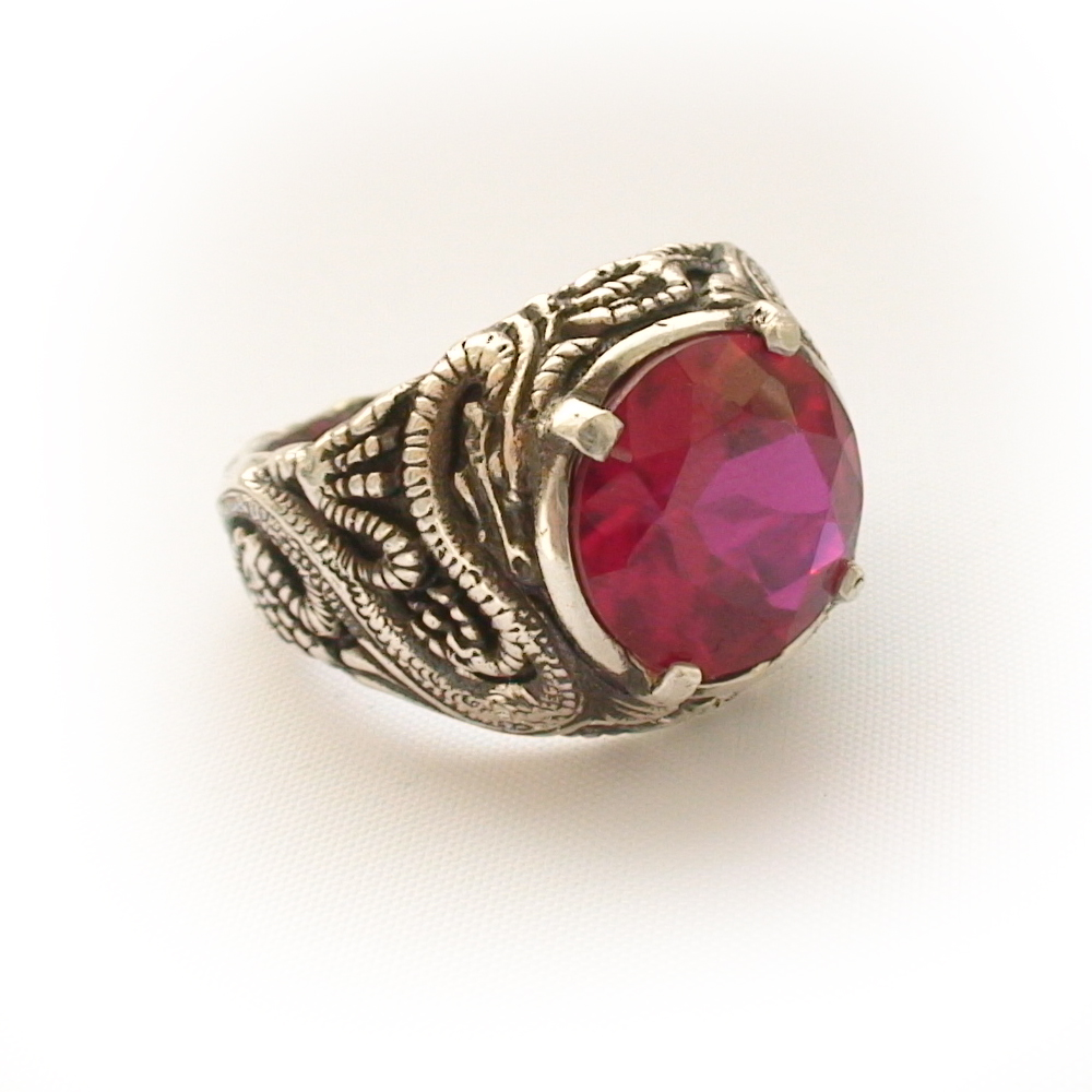 Кольцо серебряное, чернение. Вставка из красного фианита.