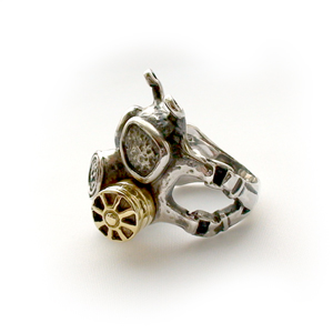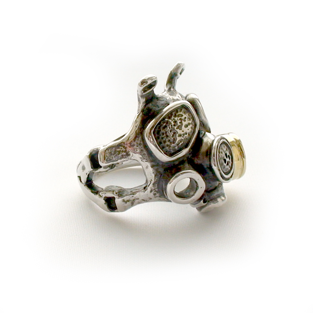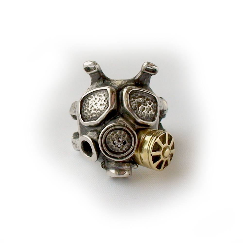 Кольцо серебряное противогаз, чернение. фильтр из латуни.