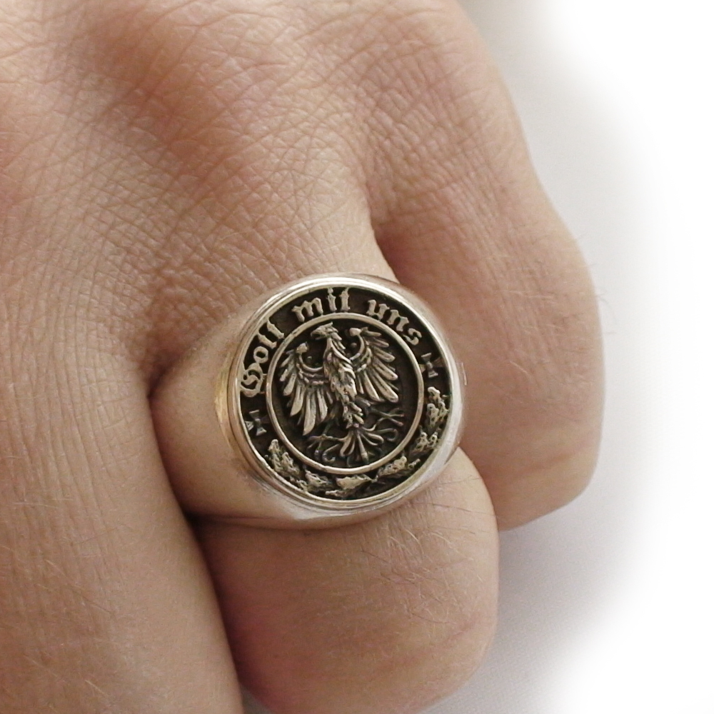 Кольцо серебряное, чернение. Надпись "Gott mit uns" перевод с немецкого "Бог с нами"