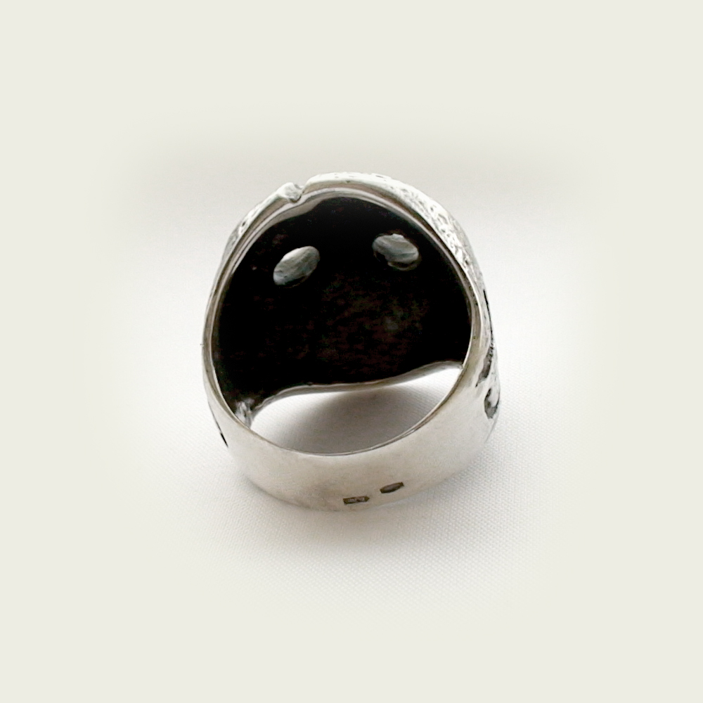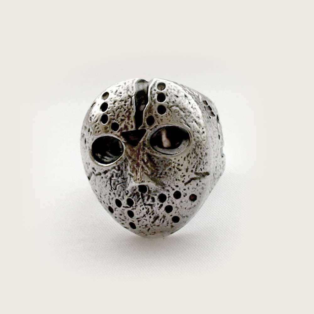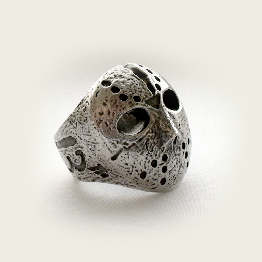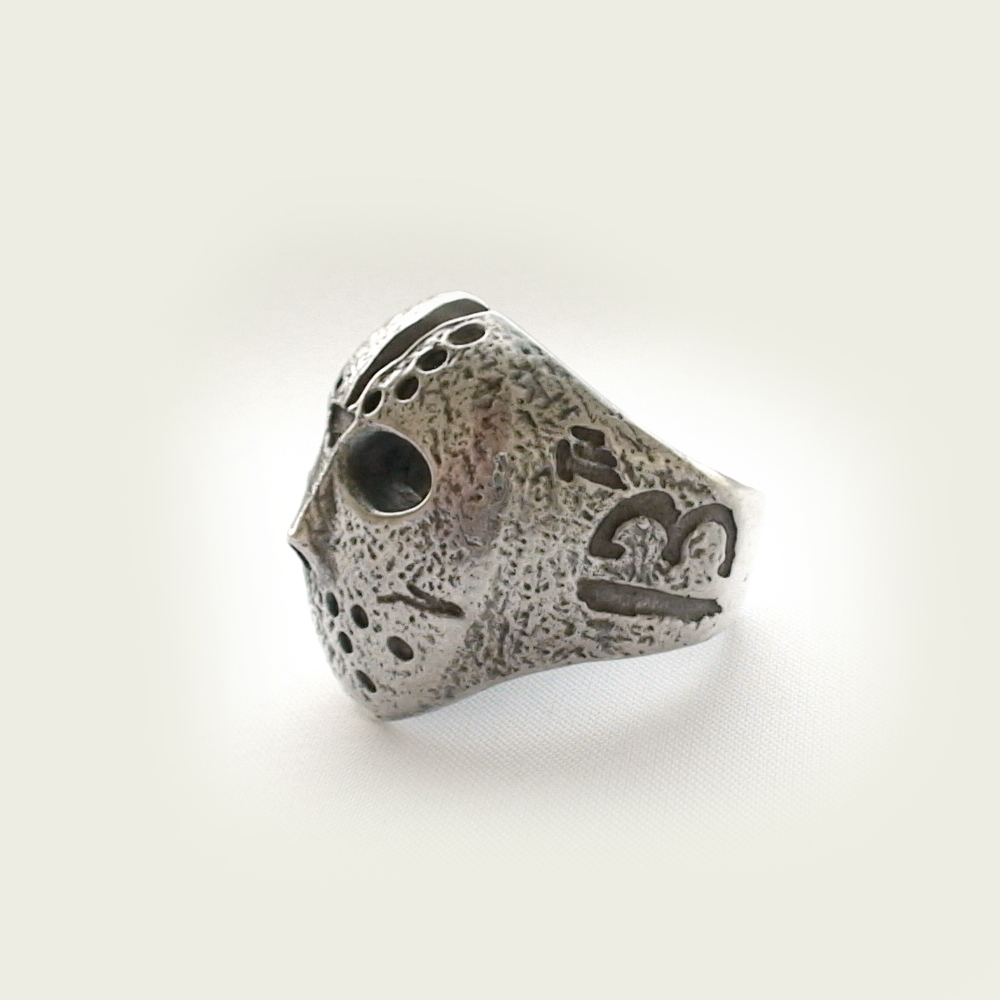 Кольцо серебряное, чернение. Хоккейная маска Джейсона.