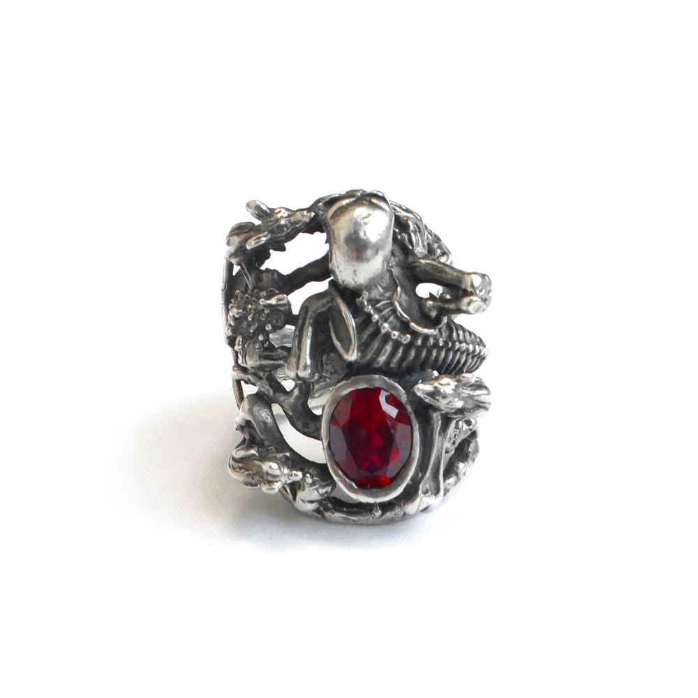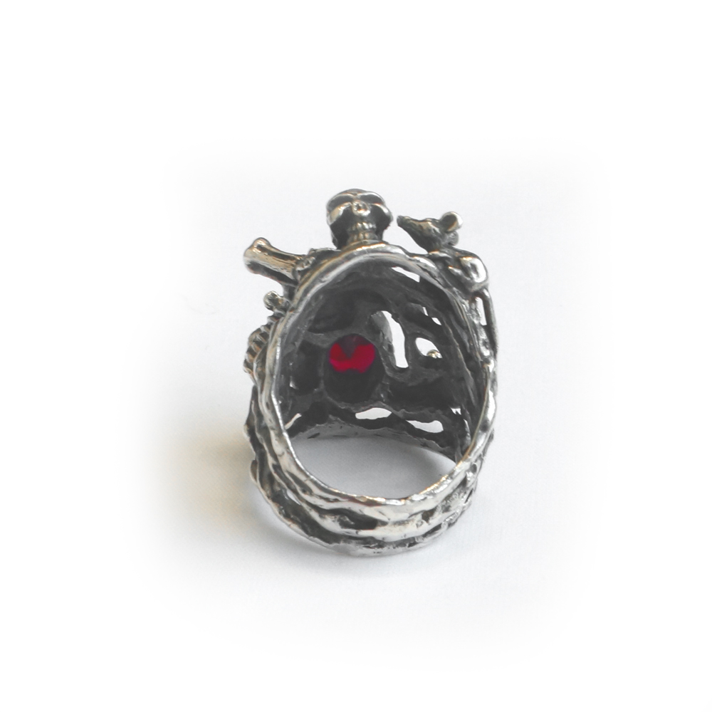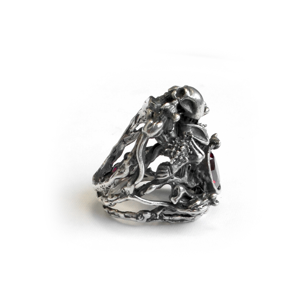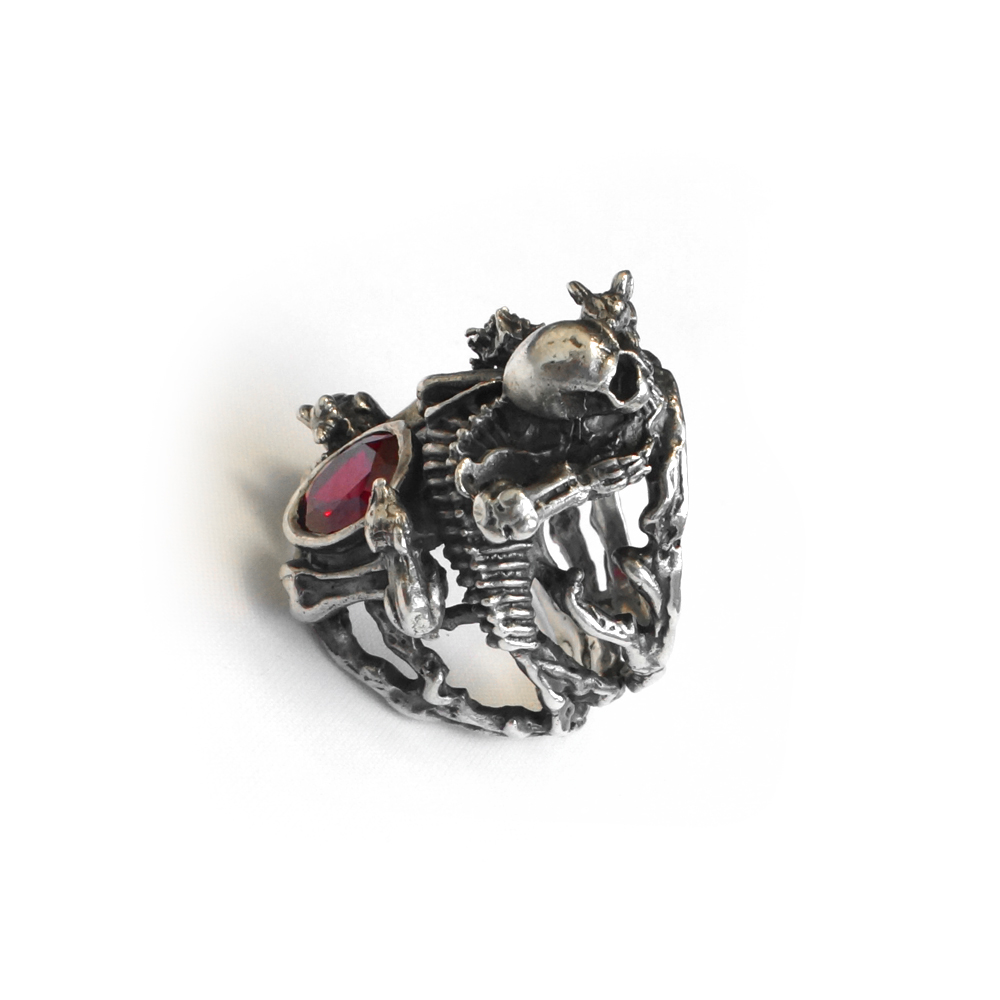 Кольцо серебряное, чернение. Камень красный фианит.