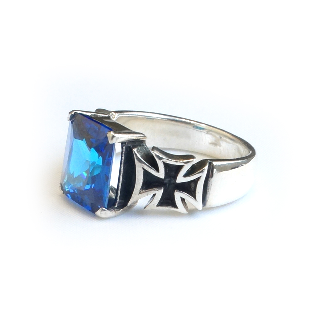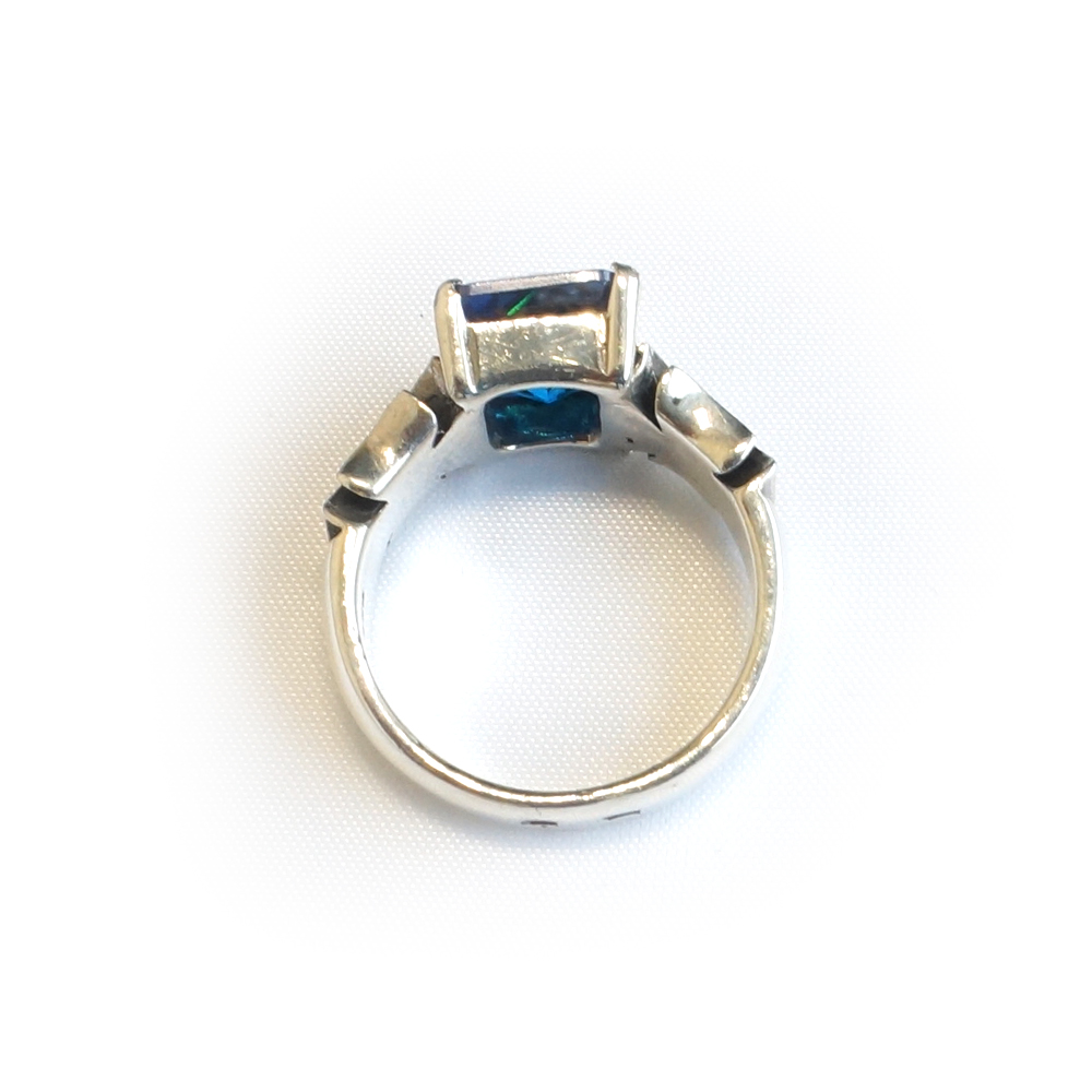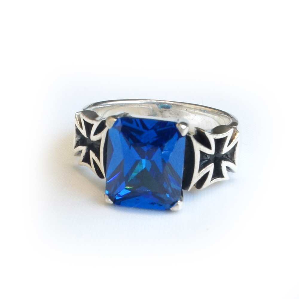 Кольцо серебряное, чернение. Камень синий фианит.