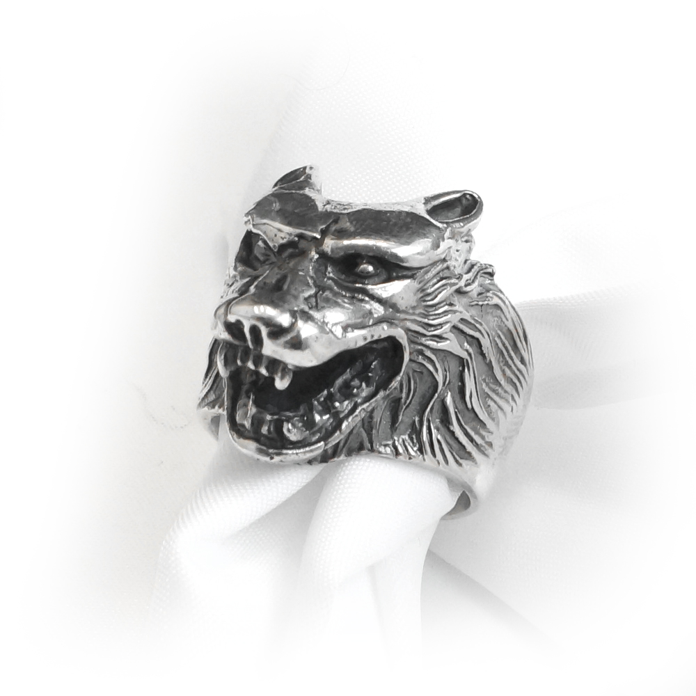 Кольцо серебряное "волк", чернение.