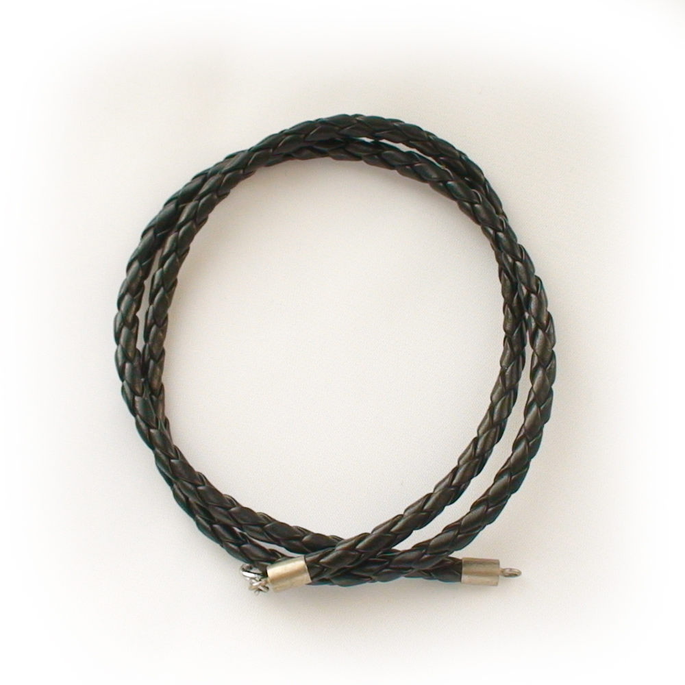 Шнурок натур.кожа. с серебряными концевиками и замком. Диаметр 4мм.