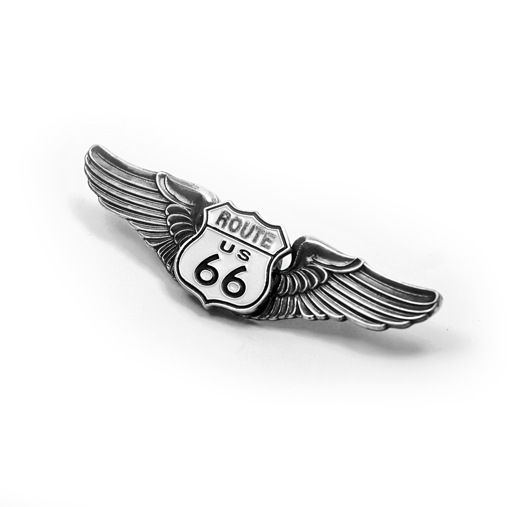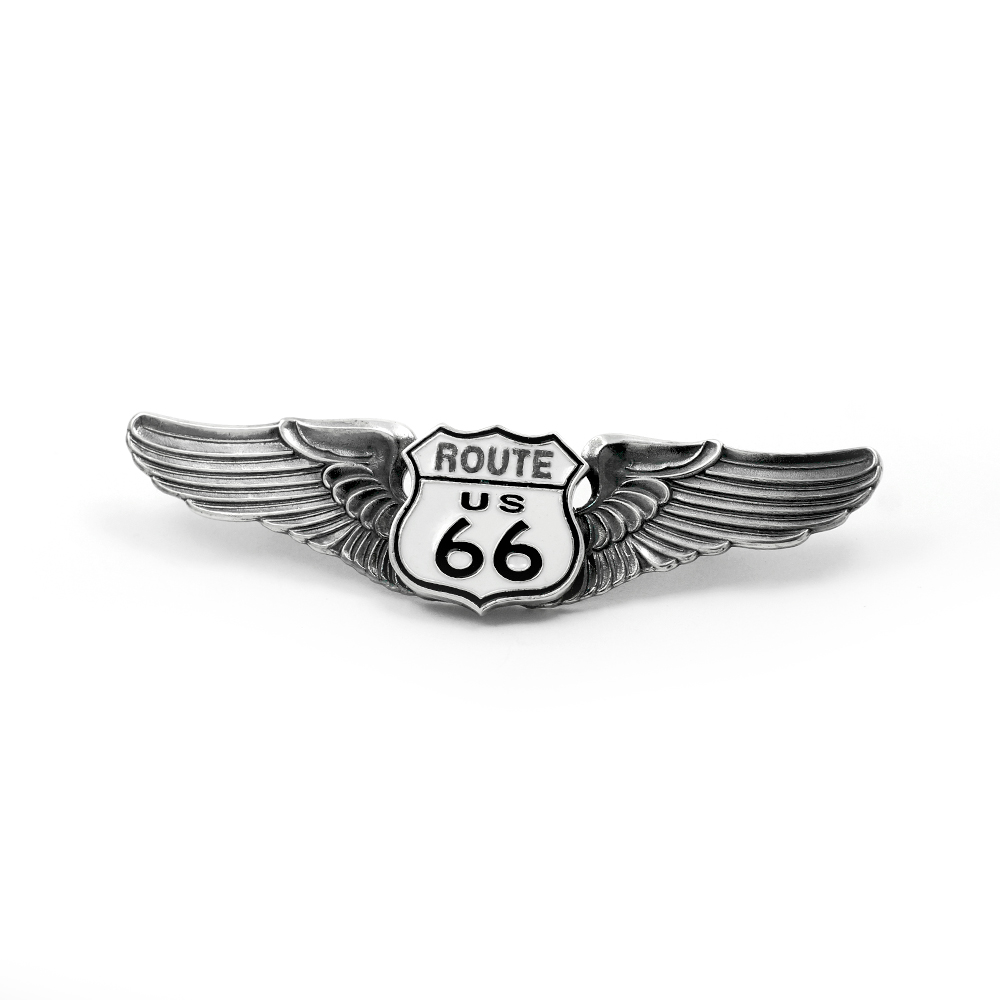 Значок серебряный ROUTE 66, чернение.
